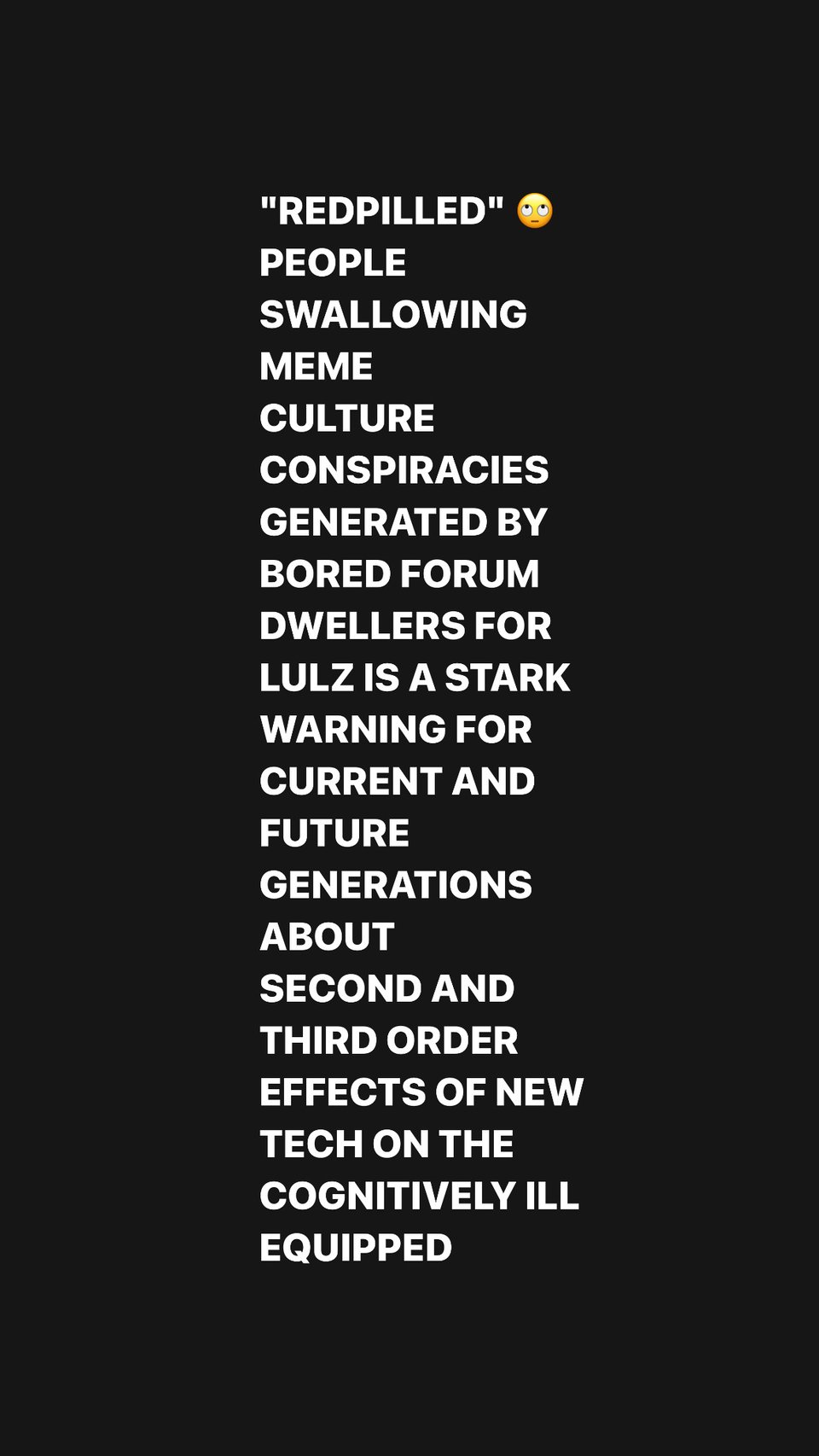What I beheld in my less-curated feed was a great deal of what must seem to the people re-posting them as in alignment with their guiding principles, but are in fact bereft of context and designed to prime automatic processing - basically setting you up to use a cognitive shortcut because what you see “makes sense” then reposting it for other people to be caught out and repost. Essentially, spreading bullshit like a virus.